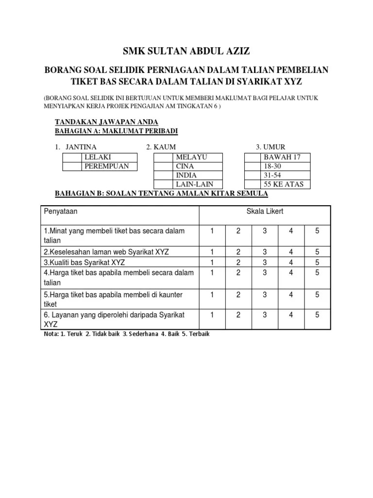 Contoh borang soal selidik geografi pt3 2018. Related posts to contoh borang soal selidik tentang sistem pengangkutan. Contoh tesis maktab borang soal selidik pengakutan siap kerja kursus geografi stpm 2017. Soal selidik contoh objektif kajian. Borang soal selidik pengakutan guru (lampiran d) kaji sek senarai semak kemudahan dan prasarana pk 07 3 contoh format minit mesyuarat.