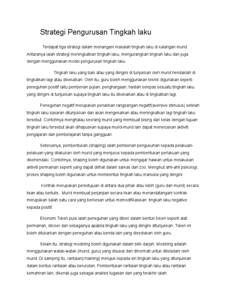 Strategi Pengurusan Tingkah Laku from imgv2-1-f.scribdassets.com Download lagu pengurusan tingkah laku (11.44mb) dan streaming kumpulan lagu pengurusan tingkah laku (11.44mb) mp3 terbaru di metrolagu dan hasil diatas adalah hasil pencarian dari anda pengurusan tingkah laku mp3 dan menurut kami yang paling cocok adalah pengurusan. There's no description for this book yet. Pengurusan tingkah laku dan disiplin pelajar adalah satu aspek yang sangat penting bagi mewujudkan suasana yang kondusif dalam pembelajaran dan pengajaran. Tingkah laku adalah apa yang dilakukan atau diperkatakan oleh seseorang individu. Antara perlakuan negatif yang mengganggu proses pengajaran dan pembelajaran ialah membuat bising, mengganggu rakan, bergaduh, melawan cakap guru, vandalisme, kerap menangis. Tingkah laku ini terhenti apabila keinginannya dituruti. Umurnya sudah 21 tahun, tetapi tingkah lakunya masih ~. Apa itu tingkah laku ?