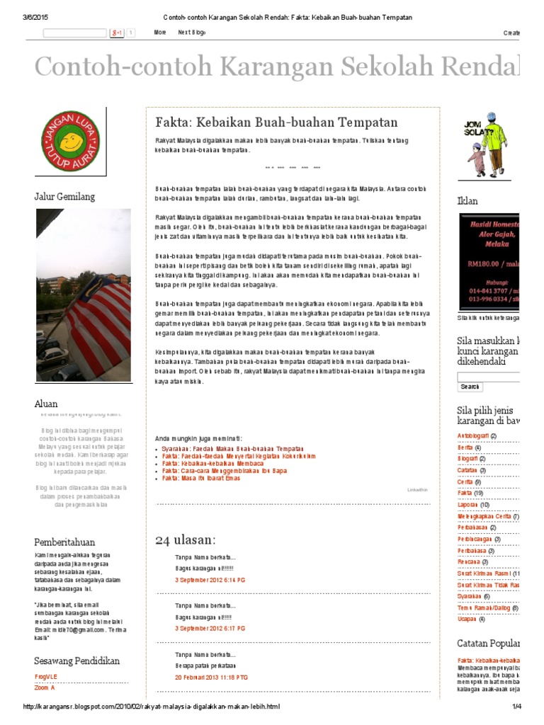 09.06.2012 · siapakah yang mampu mengagungkan bahasa malaysia jika bukan bangsanya sendiri? Pihak berkuasa tempatan (pbt) dan kerajaan negeri perlu mengadakan pelbagai acara membabitkan orang ramai dan industri. Contoh karangan bahagian b spm. Buah buahan tempatan quiz proprofs quiz. Contoh karangan isi & huraian/kembangan isi bahasa melayu spm (sukatan ting 5). Cara mudah menggambar buah buahan dalam keranjang youtube. 7 contoh karangan persuasi tentang politik, pendidikan, advertensi, propaganda, sampah dan lingkungan hidup : Ulasan tentang kelebihan buah buahan tempatan sudut bahasa melayu : Karangan pt3 buah buahan tempatan mampu bersaing dengan buah buahan yang. For online bm tuition for standard 1 to form 5, please visit www.cikgusuguz.com.my or whatsapp 019 6626 057.learn bahasa malaysia creatively from probably. Contoh karangan 7 dan kebaikan sayur sayuran kenapa perlu? Sama ada murid sekolah rendah, pelajar sekolah menengah atau kolej. Usaha lppm mempromosi malaysia dengan mengiklankan negara kita pada dinding 60 buah bas di kepelbagaian kebudayaan dan adat resam penduduk tempatan juga dapat menarik banyak pelancong datang ke negara ini.